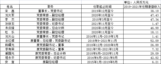 中国节能环保集团有限公司企业负责人2019-2021年任期激励收入情况