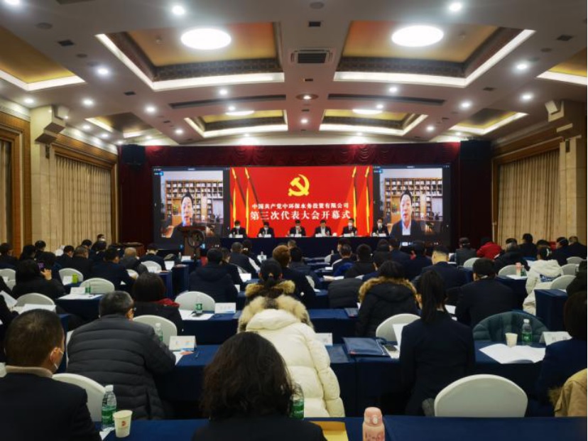 2022年12月27日,中国共产党中环保水务投资有限公司第三次代表大会在京召开。来自公司总部及各下属企业的近100名代表参加了此次大会。集团公司党委常委、副总经理曹华斌同志以视频形式出席了大会。