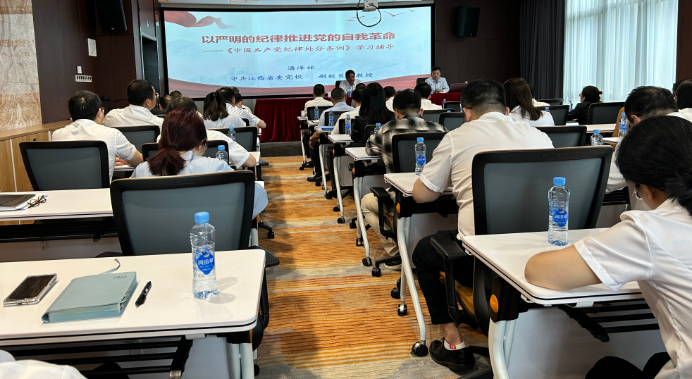 为深入学习贯彻习近平总书记关于加强党的纪律建设的重要论述,推动党纪学习教育取得实实在在成效,5月21日,江西公司党委组织开展学习贯彻《中国共产党纪律处分条例》专题解读培训,邀请江西省委党校副校长潘泽林教授作专题辅导。公司领导班子成员参加专题辅导。