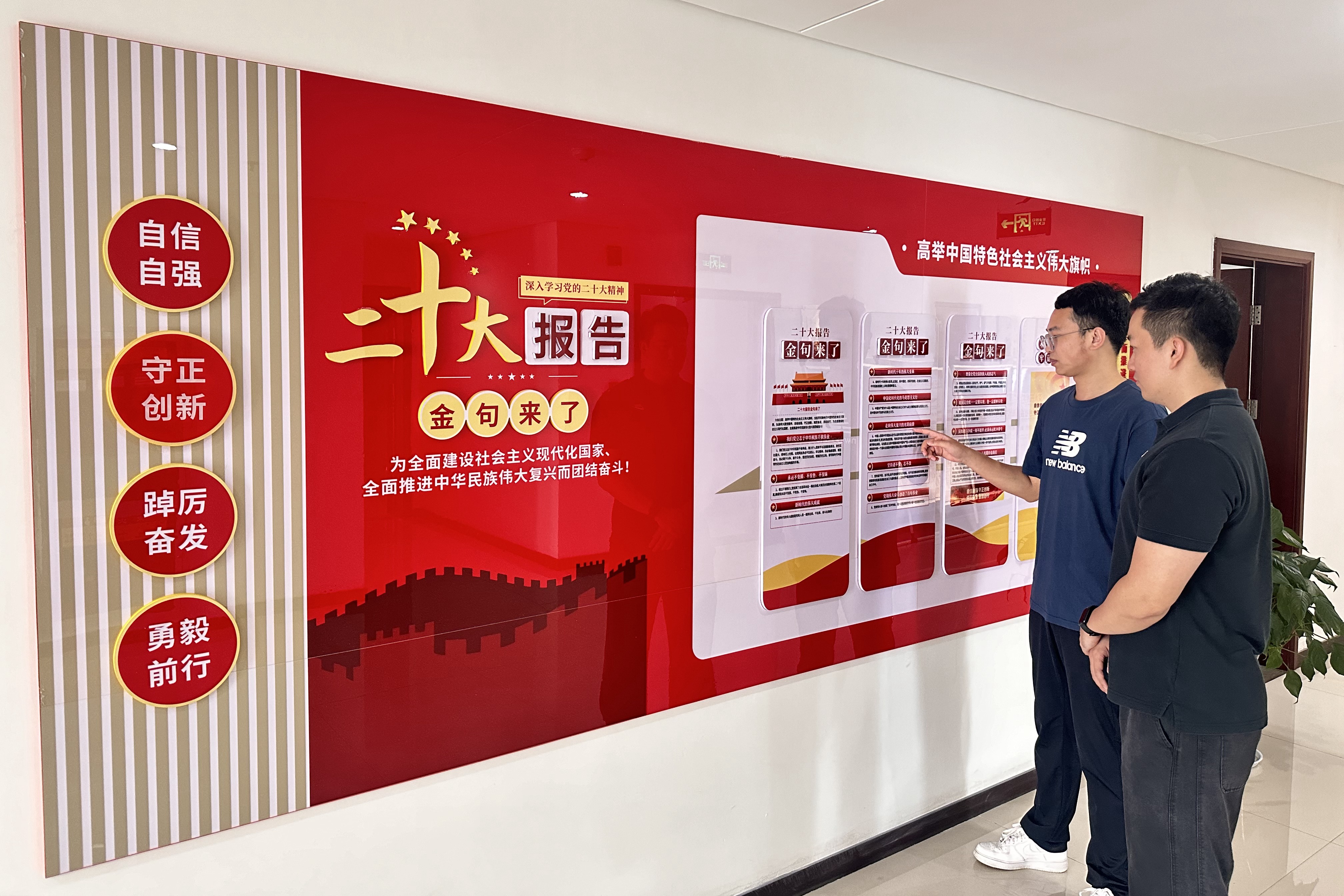 党建文化长廊包含二十大报告、廉洁文化、党建活动等板块,运用文字、图片等表现形式,宣传党的知识和工作动态,营造“处处是课堂、时时受教育”的浓厚氛围,让党员在耳濡目染中增长知识、接受教育。