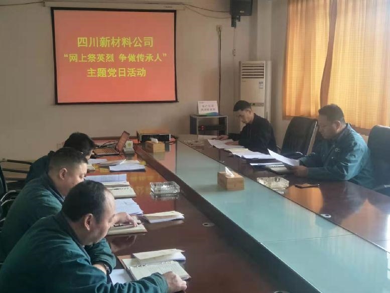 为进一步深化爱国主义教育、革命传统教育,贯彻落实资产公司“传承红色基因 牢记初心使命 守望国资安全”党史学习教育,四川新材料公司党支部组织党员和积极分子开展了“网上祭英烈 争做传承人”主题党日活动。