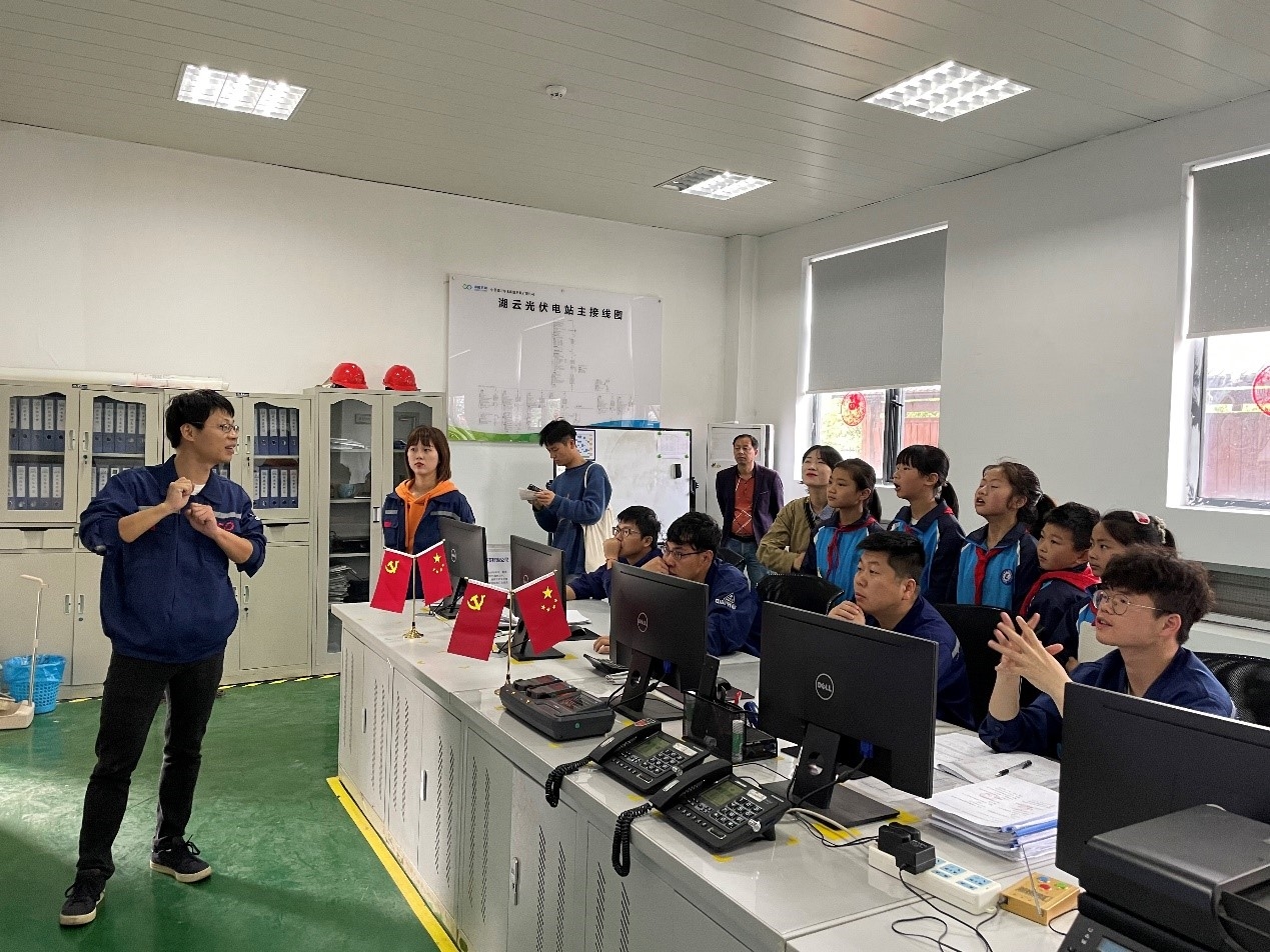 今年是中国共产党建党100周年,结合华中区开展党史学习群众性宣传教育,万年电站运维人员与师生们还特别开展了党史故事分享活动,与师生们在会议室共同观看党史纪录片,激励少先队员们奋勇前进,将红色基因和绿色发展观念代代相传。