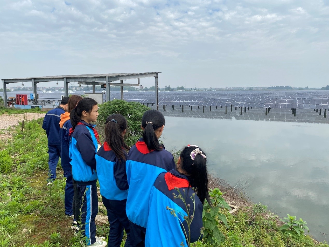 看到一块块沿着水面排列整齐、一眼望不到边际的“蓝板板”,孩子们眼里充满了好奇。万年电站负责人曾子韬边讲解边演示,让祖国未来的“花朵”充分了解到光伏电站以节能减排、降低污染为己任的使命,电站运维人员化身“守护者”,从关爱未成年人健康成长出发,开展安全用电、环保理念科普宣传,提升了日常安全用电、防触电意识。