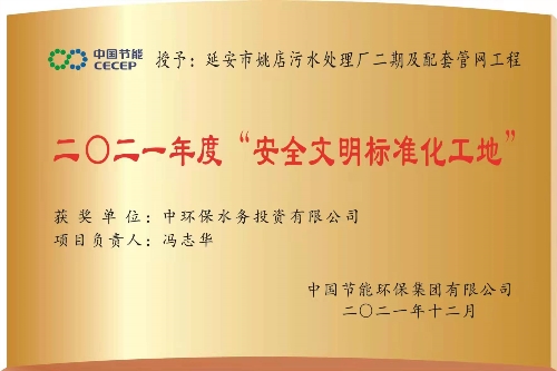 一年之内三次获评“安全文明标准化工地”,展现了延安项目公司深入贯彻落实习近平总书记关于安全生产重要论述以及安全发展理念的突出成果,树立了中环水务在安全生产管理领域的标杆形象,为中国节能和中央企业赢得了荣誉!