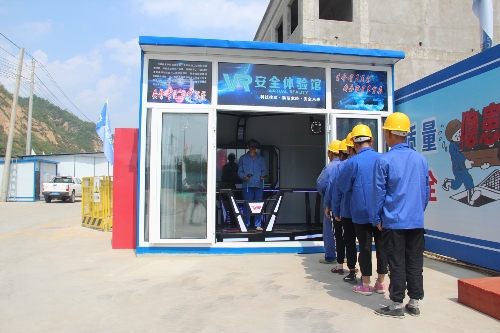 姚店项目积极探索智慧工地建设,配有智慧工地数字平台系统。配备两套远程监控设备,一套系统连接至总包单位实现参建单位视频共享;一套系统连接延安市安监站监控系统,通过技术手段采集身份信息,使用生物识别技术考勤。设有九处电子监控设备----四台塔吊上各一个,办公区三个,员工通道两个,实现了对工程施工及现场设备、物料、进出车辆和人员的全天候、多角度实时监控。配备VR安全体验馆,让施工人员以第一视角全景体验,“切身”感受违规操作带来的严重后果,提高了施工队伍的安全意识,加强了施工作业安全管理。
