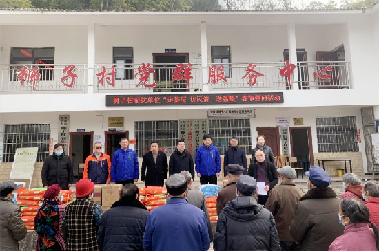按照中共资阳市委办公司关于《资阳市市级部门(单位)定点帮扶工作方案》的通知要求,1月19日,资阳市委保密机要局、市园林绿化管理处与中国环保资阳公司三家单位结对组成慰问组到对口帮扶定点村——资阳市安岳县元坝镇狮子村开展春节前慰问活动。