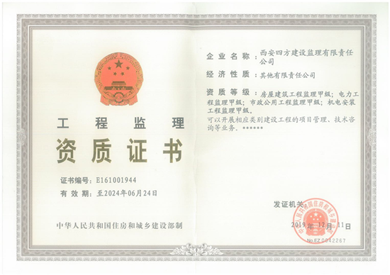 近日,中国启源下属四方监理获“机电安装工程监理甲级资质”,这是继电力工程监理甲级资质后取得的又一项专业甲级资质,标志着向监理综合资质又迈出了重要一步。