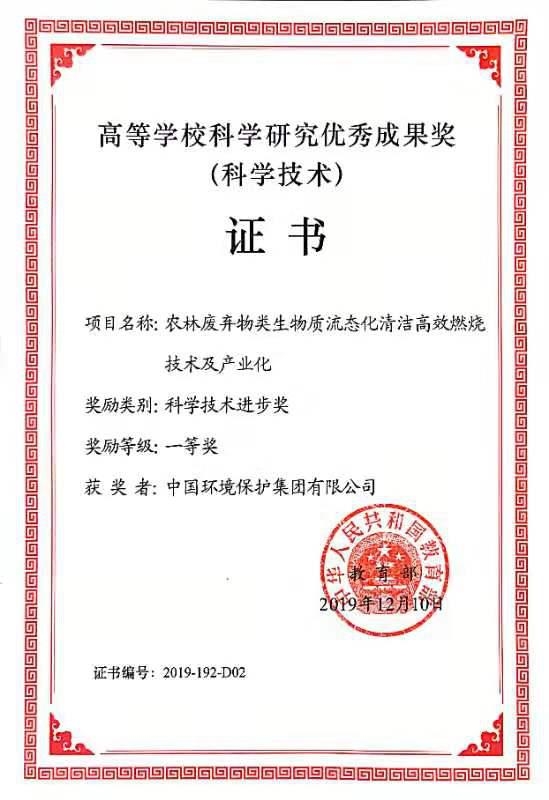 近日,中国环保与浙江大学及其他相关单位联合研发的科学技术“农林废弃物类生物质流态化清洁高效燃烧技术及产业化”项目,荣获教育部高等学校科学研究优秀成果奖一等奖。