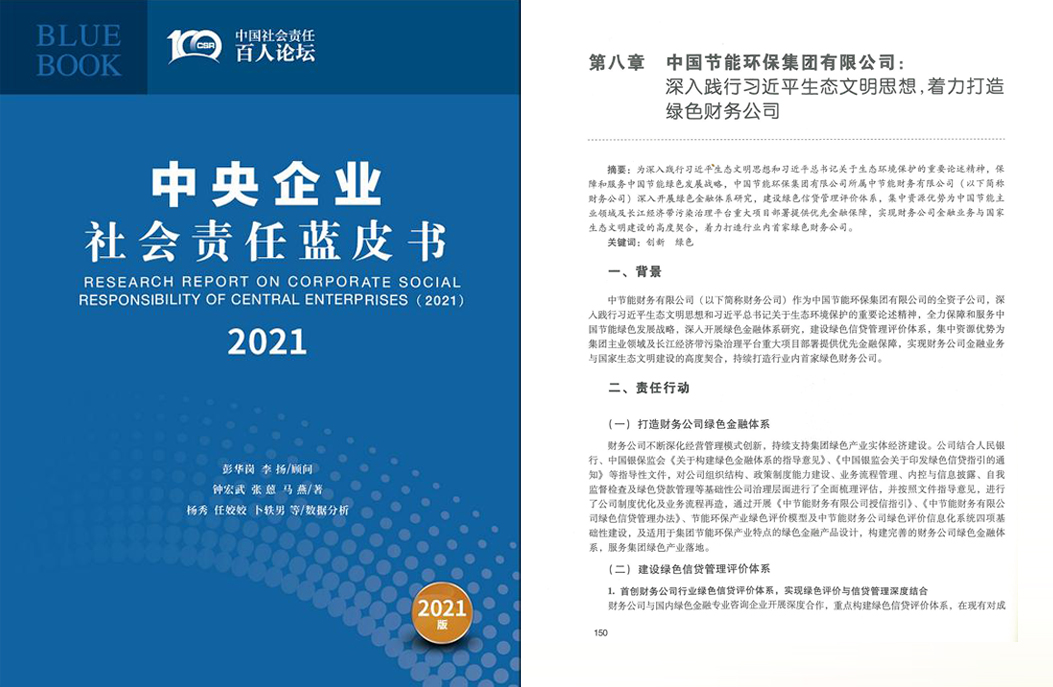 近日,财务公司上报的《深入践行习近平生态文明思想着力打造绿色财务公司》案例,入选国资委《中央企业社会责任蓝皮书(2021)》。
