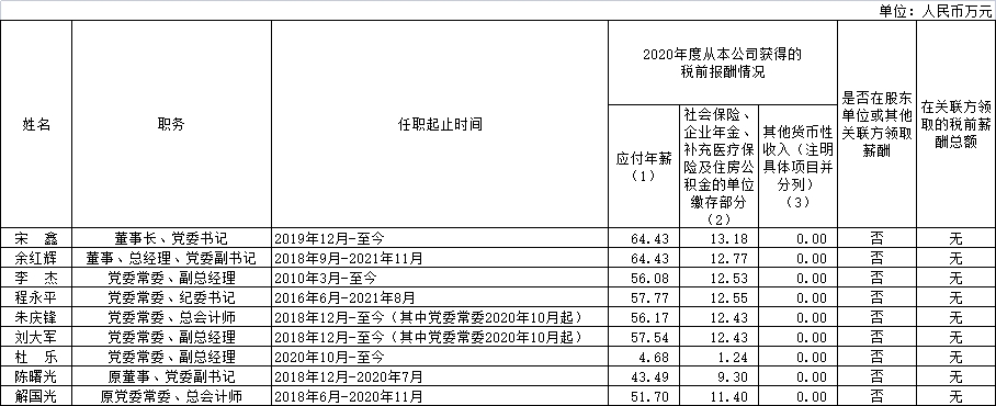中国节能环保集团有限公司企业负责人2020年度薪酬情况