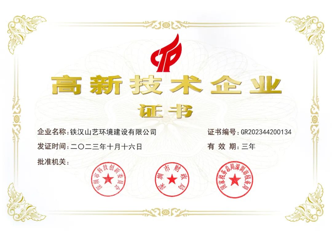 中节能铁汉所属铁汉山艺通过国家高新技术企业认定