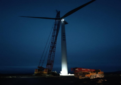 为确保完成风电公司下达的在建30万千瓦项目按期建成并网、取得电价补贴任务,青海公司积极开展“鏖战四季度、大干七十天,公司全员在寒风凛冽的青藏高原以“日”为单位,精心谋划、动态调整项目风机供货、吊装、并网工作,全力推进工程建设各项任务。11月22日,在协力光伏5万千瓦项目20台风机完成吊装后,积极协调电网办理并网手续,成功于12月5日实现首台风机并网,计划12月底全部完成吊装工作。东方华路20万千瓦项目首台风机自9月30日并网发电以来,经过调试,已实现40台风机并网发电,累计实现发电量1027万千瓦时。截至目前,青海公司在建30万项目已累计完成吊装风机共82台。