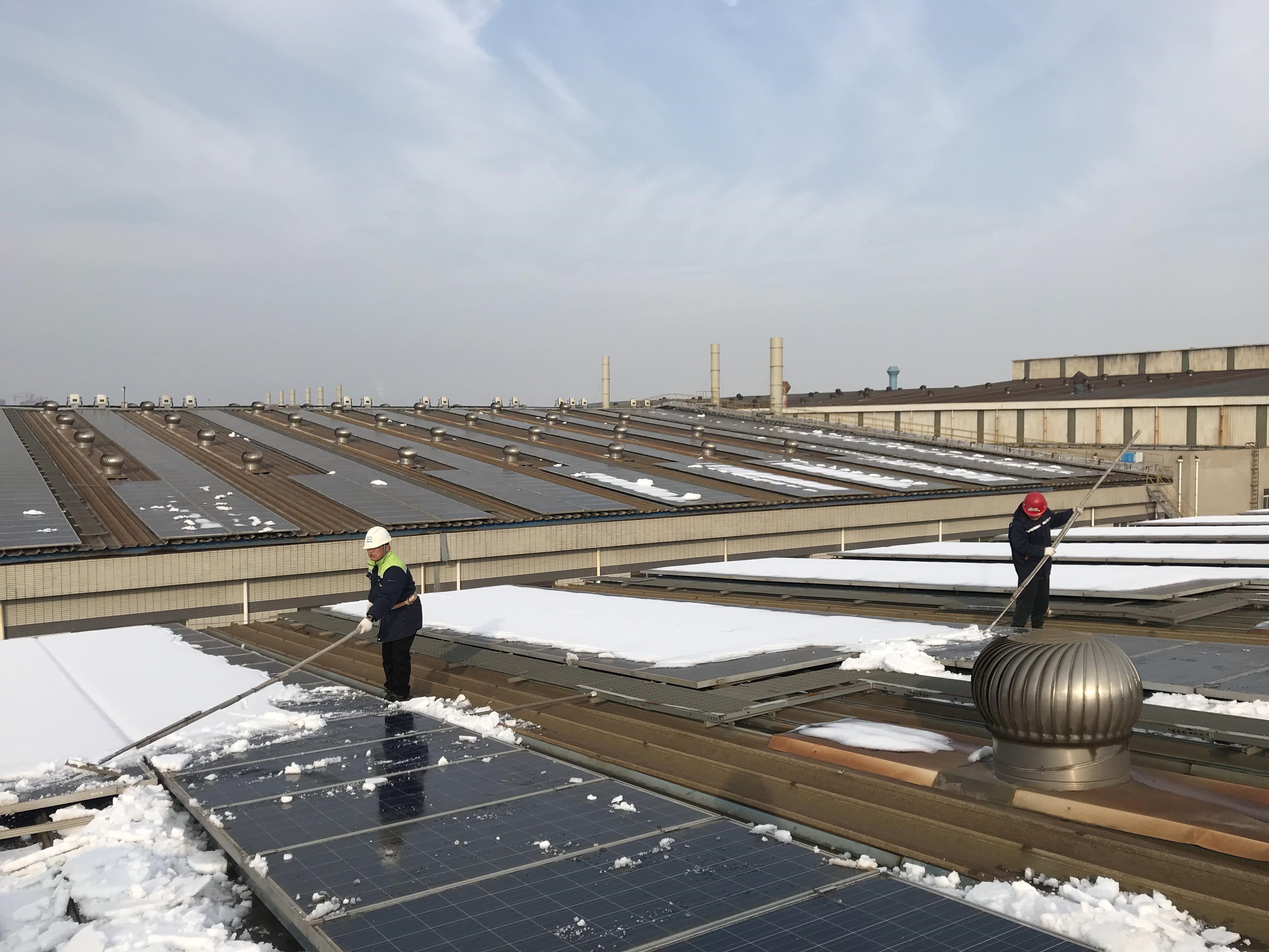 太阳能华北区鲁西片区严格落实习近平总书记“奋力把失去的时间抢回来、把疫情造成的损失补回来”的重要指示精神,全体运维人员顶着风雪开展电力设备检修维护,努力排除安全隐患,确保各设备安全稳定运行。大雪过后,第一时间清扫组件表面积雪,尽最大努力降低发电损失,想方设法提高发电量。