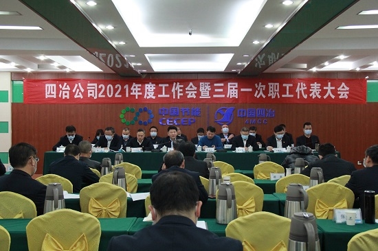 2021年1月20日-21日,四冶公司2021年度工作会暨三届一次职工代表大会在南昌顺利召开。按防疫要求,本次会议采取“现场+视频”方式进行。股东代表、鹰潭市国资委副主任余国龙应邀出席,公司领导班子成员、总部部门副职以上人员、子公司班子成员、部分项目经理等共90余人分别在主会场和贵溪分会场参加会议。