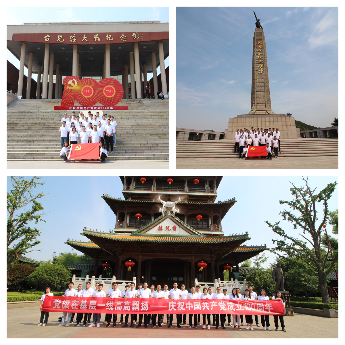 一、开展“党旗在基层一线高高飘扬——庆祝中国共产党成立100周年”主题党日活动。6月24日,全体党员干部赴台儿庄大战遗址公园、台儿庄大战纪念馆和铁道游击队纪念馆参观学习,追忆革命历史,缅怀革命先烈,与同辈共勉抗战精神,接受爱国主义教育和革命传统教育。全体同志参观了纪念馆内大量珍贵的历史资料、音像图片和实物,聆听着一个个革命前辈们誓死抵抗、浴血奋战的英雄故事,回望着革命先辈们不怕牺牲、赤诚报国的光辉事迹。