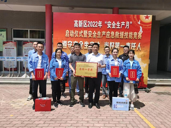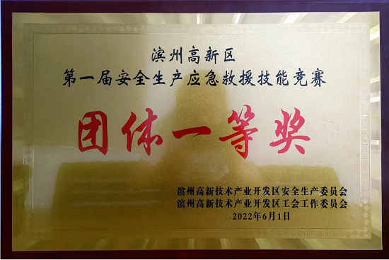 6月2日,在滨州市高新区举办2022年“安全生产月”启动仪式暨全区第一届安全生产应急救援技能竞赛上,融合环保公司下属中节能六合天融(山东)催化剂有限公司荣获应急救援技能竞赛团体一等奖。