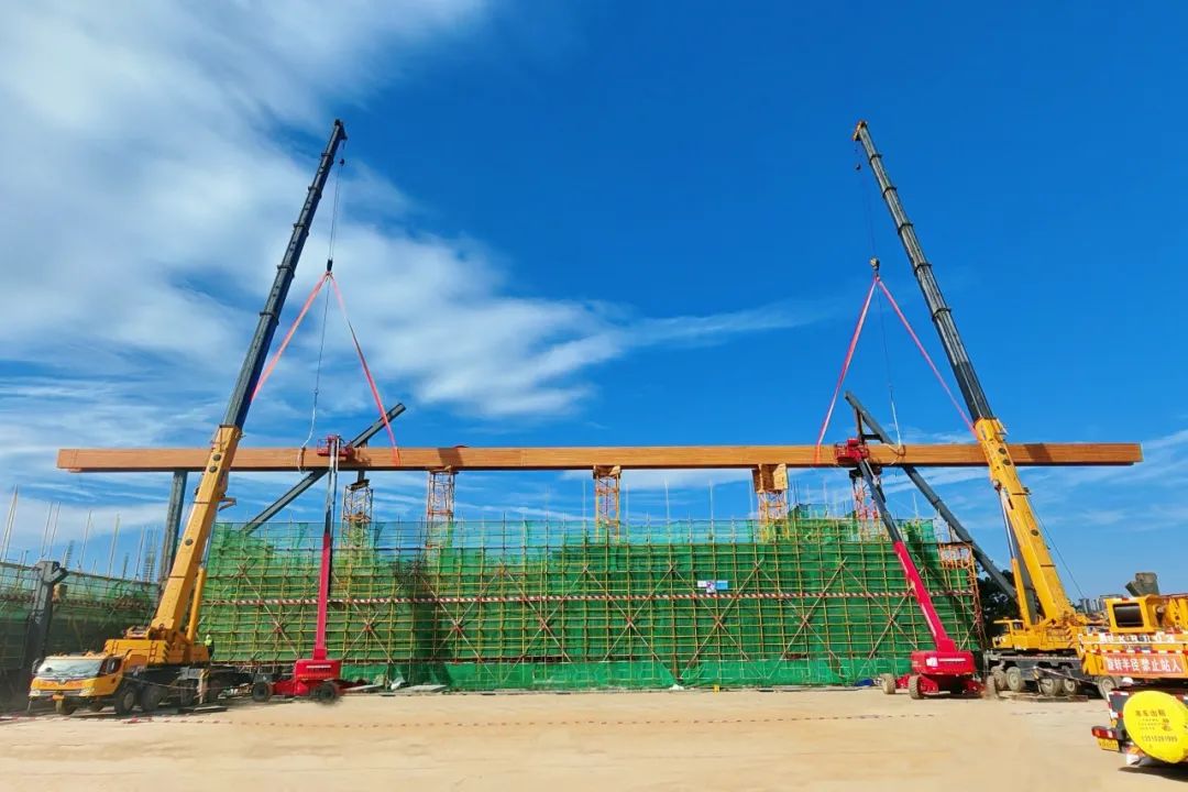 深圳机械院设计的光明国际马术中心项目国内最大跨度木梁吊装完成