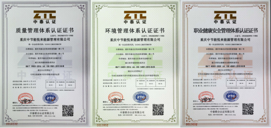 重庆中节能悦来能源管理有限公司为建立内部良好管理体系,打造企业核心竞争力,强化品质管理,提高企业效益,于2019年启动标准化体系建设工作,包含质量认证体系(QMS)、环境认证体系(EMS)、职业健康安全认证体系(OHSAS)。在公司支部书记的带领下,经全员努力,现已顺利通过可再生能源集中供冷供暖系统的运营,以及所涉及的环境管理活动和职业健康安全管理活动的标准化体系认证。