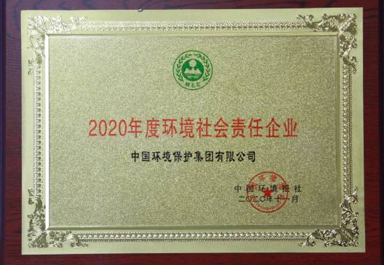 会上,凭借在固废处理领域取得的成绩,以及在践行央企社会责任方面所作出的积极贡献,中国环保获评“2020年度企业绿色发展典型案例”以及“2020年度环境社会责任企业”。
