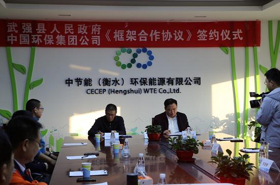 2020年11月27日,中国环保与衡水市武强县人民政府在衡水公司举行框架合作协议签约仪式,武强县县委常委、常务副县长李景辉、县政府党组成员陈永杰等相关部门领导出席签约仪式,中国环保市场中心总经理吕刚及衡水公司班子成员出席。