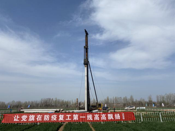 2020年3月16日,伴随着风机基础桩施工现场机器强有力的作业声和现场工作人员响亮的欢呼声,中节能温县100MW风电场项目基础工程首个桩基础施工拉开了河南区域公司复工的第一序幕。为确保该项目如期完成风电公司“抢工期、保电价”的目标要求,风电河南区域公司按照习近平总书记关于疫情防控和复工复产工作重要指示批示精神,坚持疫情防控和复工复产“两手抓、两手硬”,确保思想不松、目标不变、力度不减、标准不降,全力以“复”,坚决夺取疫情防控和复工复产双胜利,为中国节能环保事业高质量发展贡献“河南力量”。