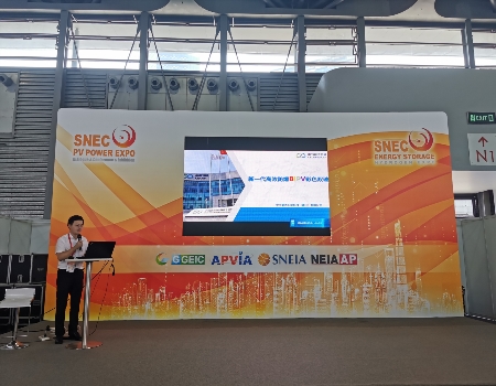 在主办方举办的“十大亮点发布会”上,受组委会邀请,太阳能镇江公司产品研发部孙观作“新一代高效防爆BIPV彩色双玻”精彩报告,详细介绍了中节能高效防爆BIPV彩色组件项目,吸引了大批参展观众驻足聆听。