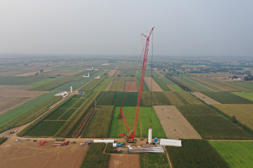 为确保项目安全、高效推进,风电河南公司调动精锐力量,兵分两路。一队赶赴河南濮阳县和范县等地,24小时昼夜镇守“争抢”第一台主吊车,驻场主吊车生产厂家催货,积极协调第二台主吊车,并同步开展送出线路、电网接入及生产准备等相关工作,力争早并网早发电;另一队赶赴河南安阳、山东菏泽风机厂家,紧盯风机设备排产、出货及到货节点,并结合其生产进度和生产能力,积极对接协调风机设备厂家领导层,从山西,新疆等多地调配主机设备,切实解决风机设备供货难的问题。在项目现场,公司负责人常住一线,积极组织技术骨干,根据施工进度,会同施工单位、监理单位和风机厂家对吊装方案和应急措施进行多方位谋划论证,统筹安排风机厂家对施工单位进行安全技术交底,并利用“主吊车空窗期”,提前安排部署,300吨汽车吊先行,率先铺开第一节风机塔筒的吊装工作。9月25日,终于抓住天气晴好的有利时机,凭借丰富的技术经验,经过72个小时的连续奋战,顺利完成首台风机吊装工作。