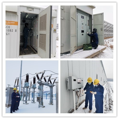 太阳能西中区各电站积极应对,及时关注当地天气情况,提前完成农业大棚落雪孔检查及室外设备防护检查加固工作。降雪过后,在零下十度左右的天气里,全体运维人员度电必争,积极组织开展厂前区、巡检道路、电池组件积雪清扫工作,迅速打通日常通行及巡检道路,极大减少了因积雪造成的发电量损失。党员干部尖刀班成员带头开展发电设备专项检查及消缺工作,及时排除设备隐患,确保电站安全稳定运行。