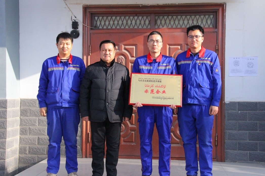 自2019年以来,根据新疆阿克苏地区乌什县“百企帮扶百村”部署要求,太阳能新疆区乌什公司对乌什县阿合雅镇荒地农场(20)村开展定点帮扶工作。一年多来,乌什公司在太阳能新疆区党总支的支持带领下,全力开展扶贫帮困及民族团结工作,在当地树立了中国节能良好形象。 今年10月,乌什县民族团结进步创建活动领导小组授予乌什风凌电力科技有限公司《乌什县民族团结进步创建示范企业》荣誉称号。