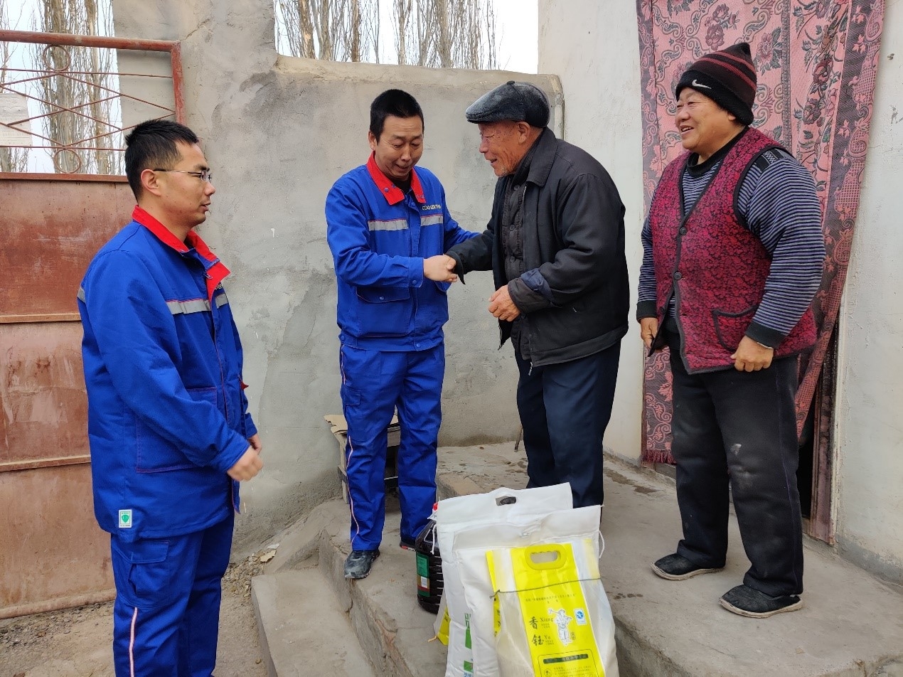 “王站长,这么冷的天,你们又来看望我了!”11月26日,新疆乌什县阿合雅镇荒地农场(20)村村民阿依努尔·库宛紧紧握住了乌什风凌电力科技有限公司站长王勇的手,感激地说道。