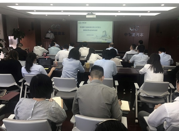 2020年8月20日下午,中节能资本控股有限公司开展了第六期“学理论·精业务”系列培训,资本运营部杨霍英奇分享了对能源数字化智能化智慧化的思考、李鹏对科创板与创业板首次公开发行战略配售业务进行了解析。中节能资本公司领导、本部及各子公司员工共计50人参加了培训。