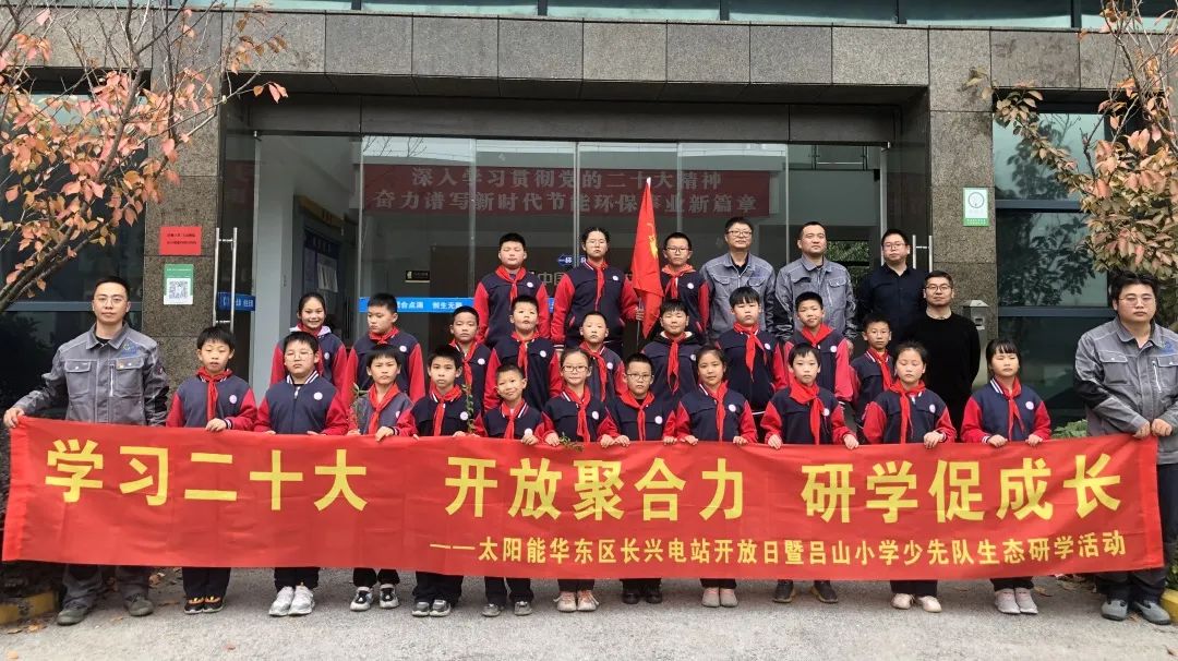 为进一步学习宣贯党的二十大精神,太阳能华东区围绕“爱党爱国爱企”学习教育持续开展国企开放日活动。11月25日,太阳能华东区长兴电站迎来了吕山小学生态研学小队的50名小学生,在这里开启了一场参观研学之旅。