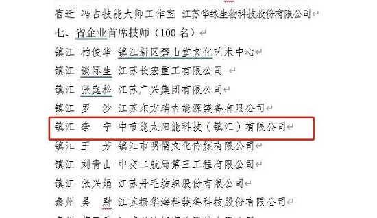 近日,江苏省人力资源社会保障厅发布了“关于高技能人才重点项目评审结果的公示”,公布了江苏省企业首席技师评审结果,太阳能镇江公司信息部部长李宁被评为江苏省企业首席技师,“江苏省首席技师”的评选工作旨在落实江苏省中长期人才发展规划纲要,大力推进千名企业首席技师培养计划,为企业以及产业发展解决实际技术难题,并发挥示范作用,带动企业职工技能水平整体提高,切实提升企业创新能力和创造力。此项荣誉全省仅评选100名代表,镇江市仅有8人当选。