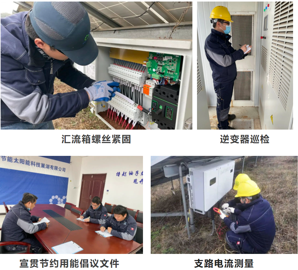 巢湖电站坚决做好冬季保发电工作。巢湖电站认真研究学习国网安徽电科院下发的迎峰度冬电力保供工作部署通知,对40兆瓦光伏发电设备开展特殊巡检及宣贯节约用能倡议工作,从组件调整最佳角度、汇流箱底座螺丝紧固,到逆变器支路巡视测温,再到箱变巡查三相电流平衡,确保每台电气设备健康运行不间断。