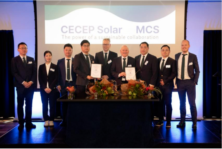 近日,太阳能镇江公司与荷兰本土公司MCS BV太阳能合作启动仪式于荷兰北部Stadskanaal市中心顺利举行,双方代表现场签字。全荷华人社团联合会主席,当地最大商会运河地区商会主席,荷兰聚力信用合作社主席等人出席仪式并发表致辞。