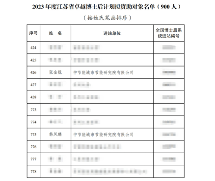 近日,江苏省人力资源社会保障厅发布《关于2023年度江苏省卓越博士后计划拟资助对象名单的公示》,节能科技下属研究院韩凤麟、张金锐2位博士喜获资助。