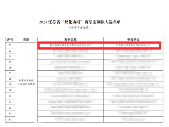 近日,江苏省委信办发布《2023江苏省数字化绿色化协同转型发展典型案例拟入选名单》,研究院高铁新城绿色智慧综合能源站项目入围数字技术赋能行业绿色化转型案例。常州市仅4个案例入选。