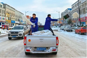 此外,在山东德州,风电河南区域公司恩城风电场积极践行央企社会责任,协助属地政府开展道路除冰、撒盐消雪等工作,最大限度减轻凝冻天气对道路交通造成的影响,为广大居民群众回家过年清障“开路”。