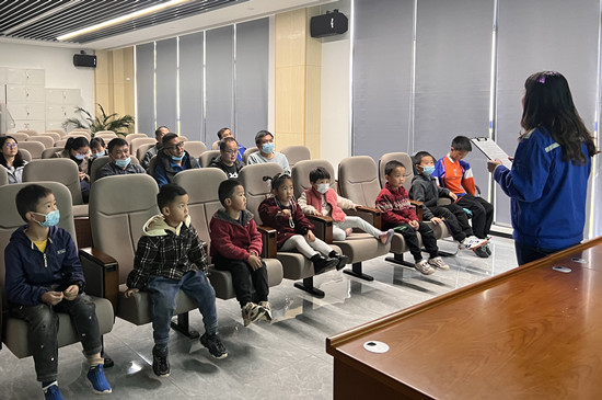 宣传会上,大家观看了纪录片《一路象北》,片中展现的对野生动物的关爱,对人与自然和谐共生的向往,体现着我国生物多样性保护水平和生态文明建设成果;动画视频《渣渣的一生》向小朋友们介绍了生活垃圾转变为清洁能源的过程,激发了小朋友对生活垃圾焚烧发电工艺的浓厚兴趣,积极与讲解员互动问答。