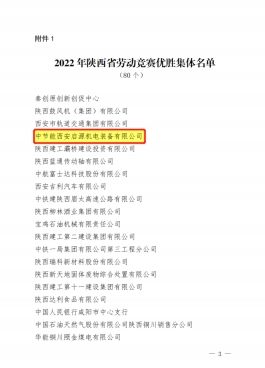 近日,陕西省劳动竞赛委员会公布了一批先进集体和个人,公司所属中节能西安启源机电装备有限公司(以下简称:启源装备)被授予2022年“陕西省劳动竞赛优胜集体”。