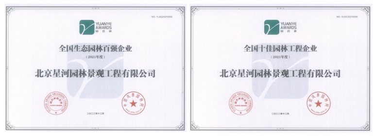 近日,中节能铁汉所属铁汉星河获得由中国风景园林网、园冶杯组委会颁发的“全国生态园林百强企业”“全国十佳园林工程企业”两项殊荣。