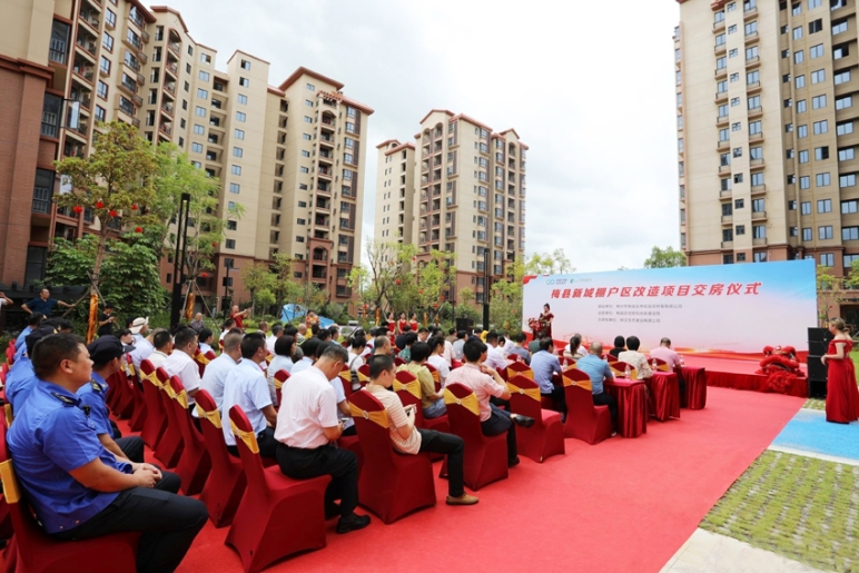 8月22日上午,由中节能铁汉所属铁汉建设承建的广东省梅州市梅县新城棚户区改造项目,在梅县区梅湾雅苑(大沙安置区)、三丰雅苑(三丰安置区)举行交房仪式,交付后共可安置1164户。梅县区委常委、副区长吕瑜泉参加。