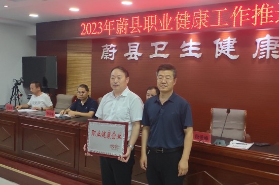 7月14日,蔚县卫生健康局组织召开2023年全县职业健康工作暨表彰会议。会上卫生局副局长段爱峰为中国环保蔚县公司颁发了“河北省职业健康企业”奖牌,蔚县公司党支部书记、总经理庞纪伟代表公司领奖。