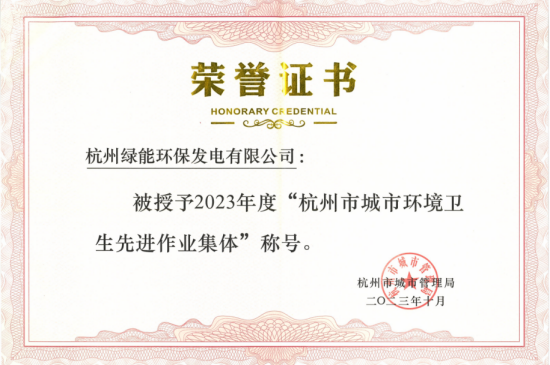 在2023年10月25日浙江省第二十七个环卫工人节庆典上,杭州市城市管理局和上城区人民政府对“在服务保障亚运会、亚残运会,打造‘席地而坐’的卫生环境中勇于担当、勇于奉献、勇于创新的精神风貌”的单位和个人进行了表彰,中国环保杭州公司凭借其优秀的工作成果,荣获了“2023年杭州市城市环境卫生先进作业集体”的称号。