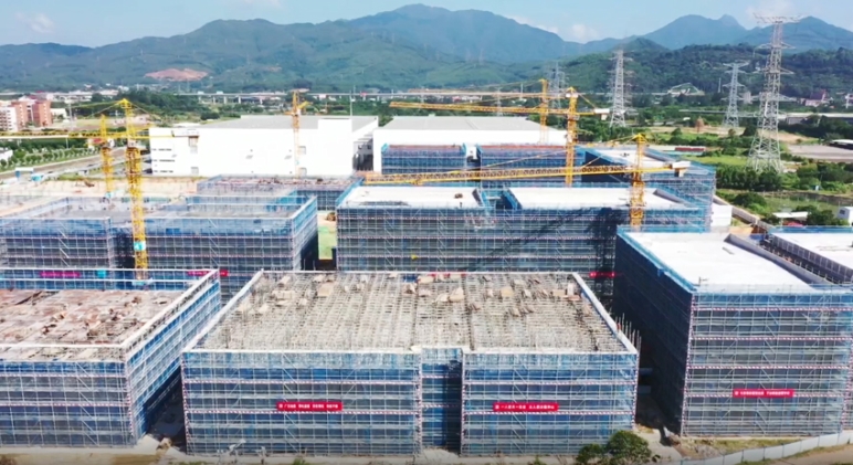 “项目是今年4月17日主体工程开工,今年8月3日完成首个厂房主体结构封顶,8月30日完成了所有厂房的基础建设,目前已有七栋厂房完成了主体结构,剩余所有厂房计划在12月31日前全部封顶,预计在明年的八月份交付业主使用。”项目负责人说。