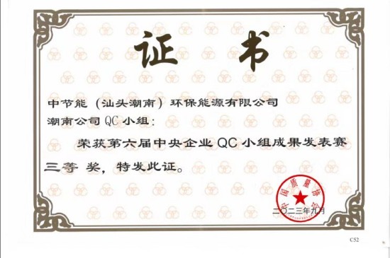 近日,由国务院国资委指导,中国质量协会主办的第六届中央企业QC小组成果发表赛在辽宁省大连市成功举办,共86家中央企业,202个QC小组入围此次成果发表赛。中国环保潮南公司提交的《提高陈腐垃圾掺烧量》课题荣获三等奖。