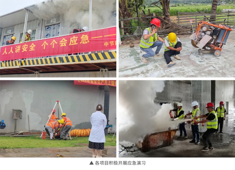 认真开展消防应急演习,筑牢安全防线。为守好安全最后一道防线,不断提升应对各类突发事件的处置能力,今年“安全生产月”期间,各项目分别开展了火灾事故现场演练、中毒窒息现场处置和消防应急疏散演练等。以演促练、以练筑防,全面提升突发事件应急处置能力,全员覆盖提升本质安全水平,扎实开展安全生产相关活动。同时,各单位结合安全生产月工作要求,积极开展安全生产大排查大整治活动,积极防范安全风险,及时消除隐患。