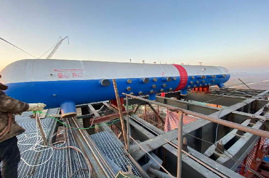2022年1月15日,中国环保商河公司克服极端天气、造价紧张、工期压力大等困难,有序推进各项工程进度,如期完成锅炉汽包吊装工作。