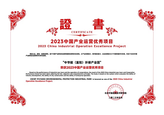 公司开发建设运营的中节能(富阳)环保产业园,凭借其绿色低碳的建设理念和智慧化综合服务运营体系,荣获“2023中国产业运营优秀项目”。