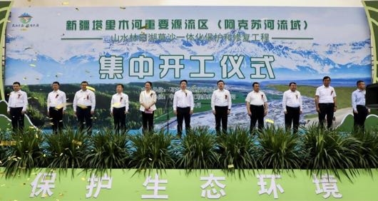 5月13日,阿克苏地区行政公署在新疆维吾尔自治区阿克苏市举行新疆塔里木河重要源流区(阿克苏河流域)山水林田湖草沙一体化保护和修复工程(以下简称阿克苏山水项目)集中开工仪式。